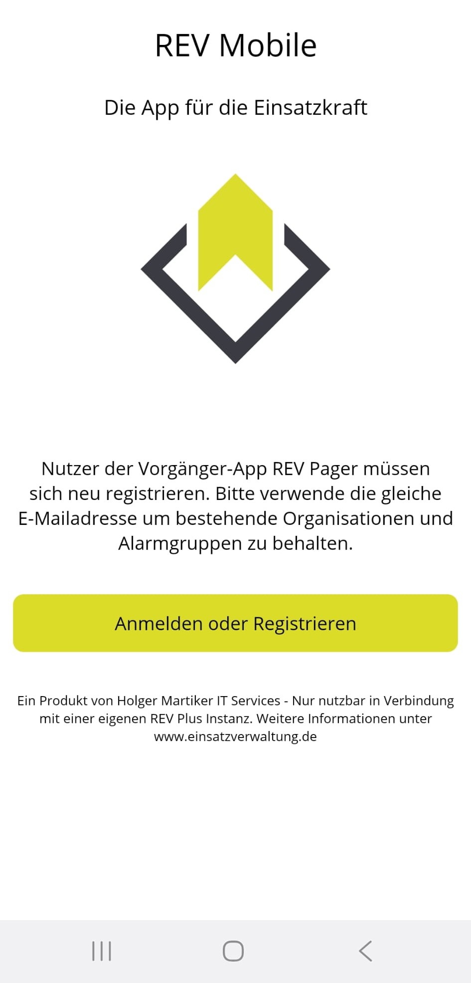 Für die Verwendung der REV Mobile App ist ein neuer REV Cloud Account notwendig. Der alte Account aus REV Pager kann nicht weiter verwendet werden. Es muss einmalig ein neuer Account angelegt werden.